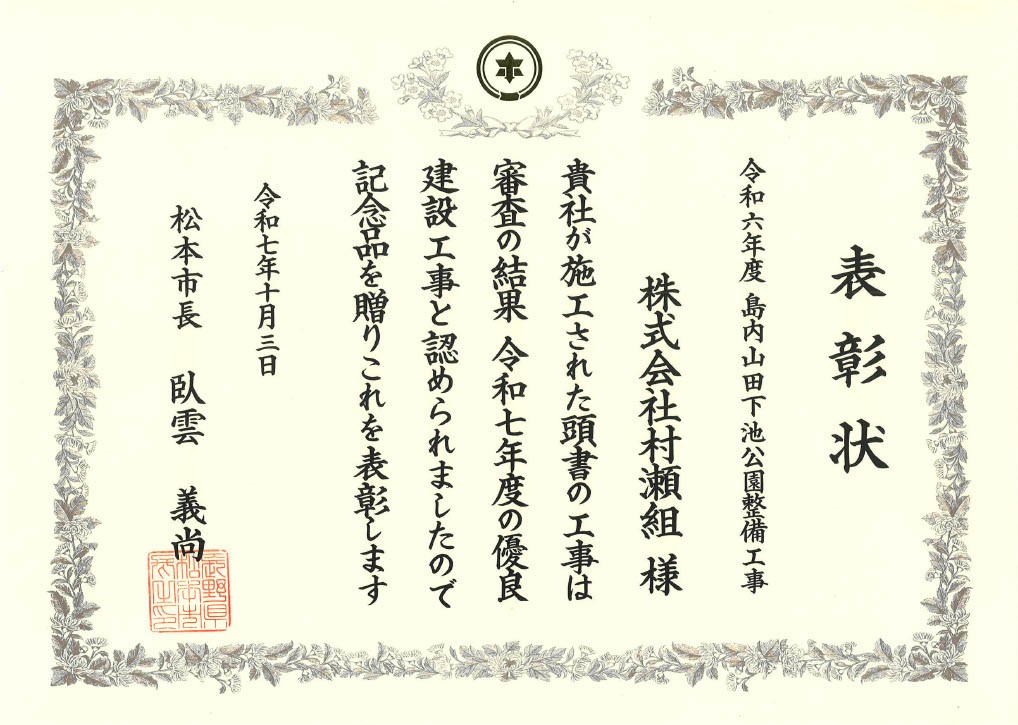 Return to 令和7年度松本市優良建設工事を受賞しました!!