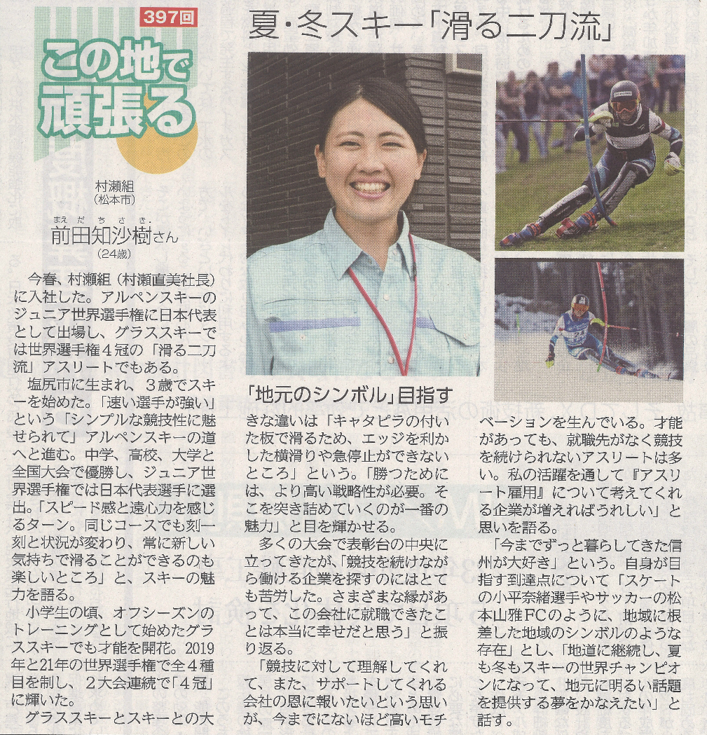 Return to 当社のアスリート社員、前田知沙樹さんが新建新聞に掲載されました