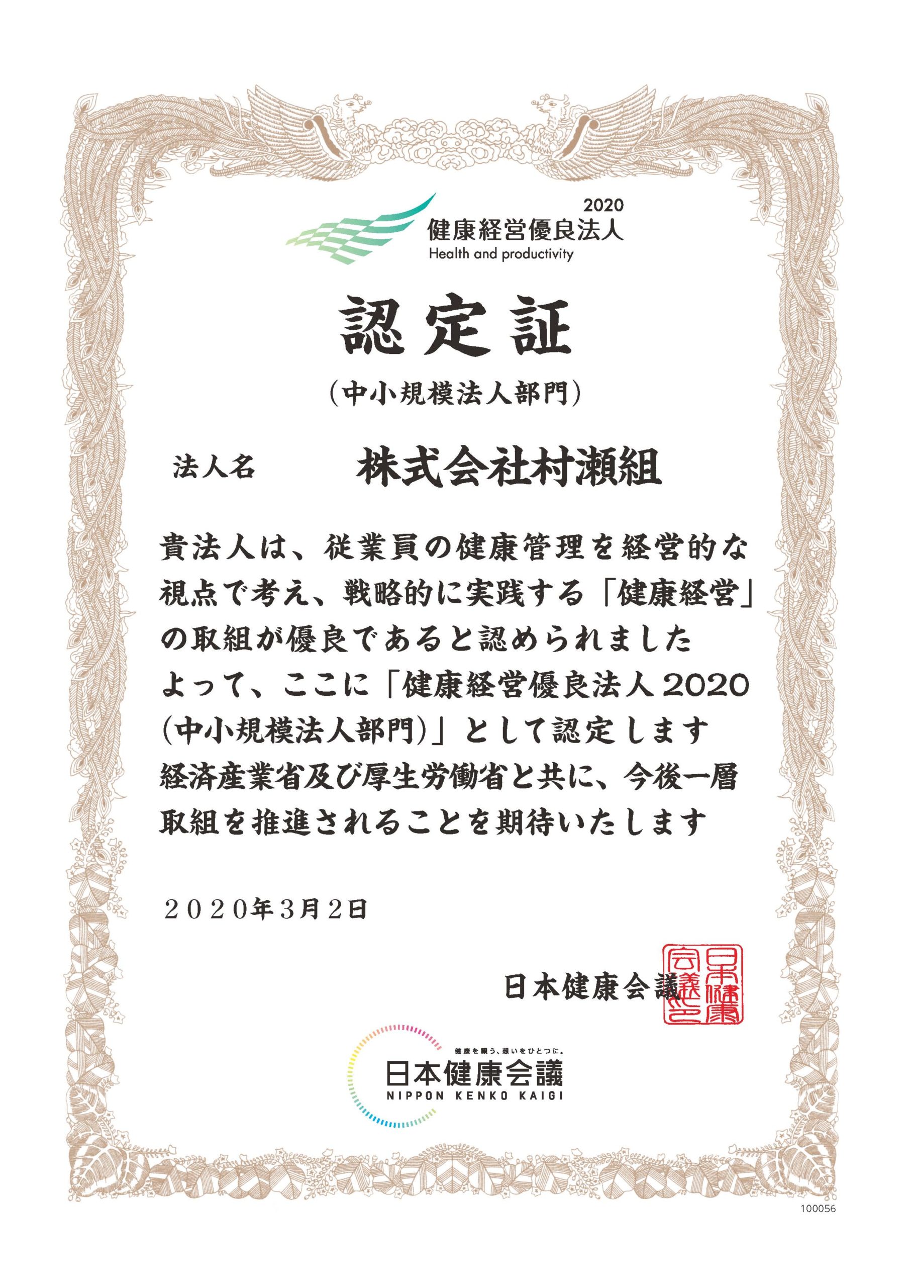 健康経営優良法人2020に認定されました