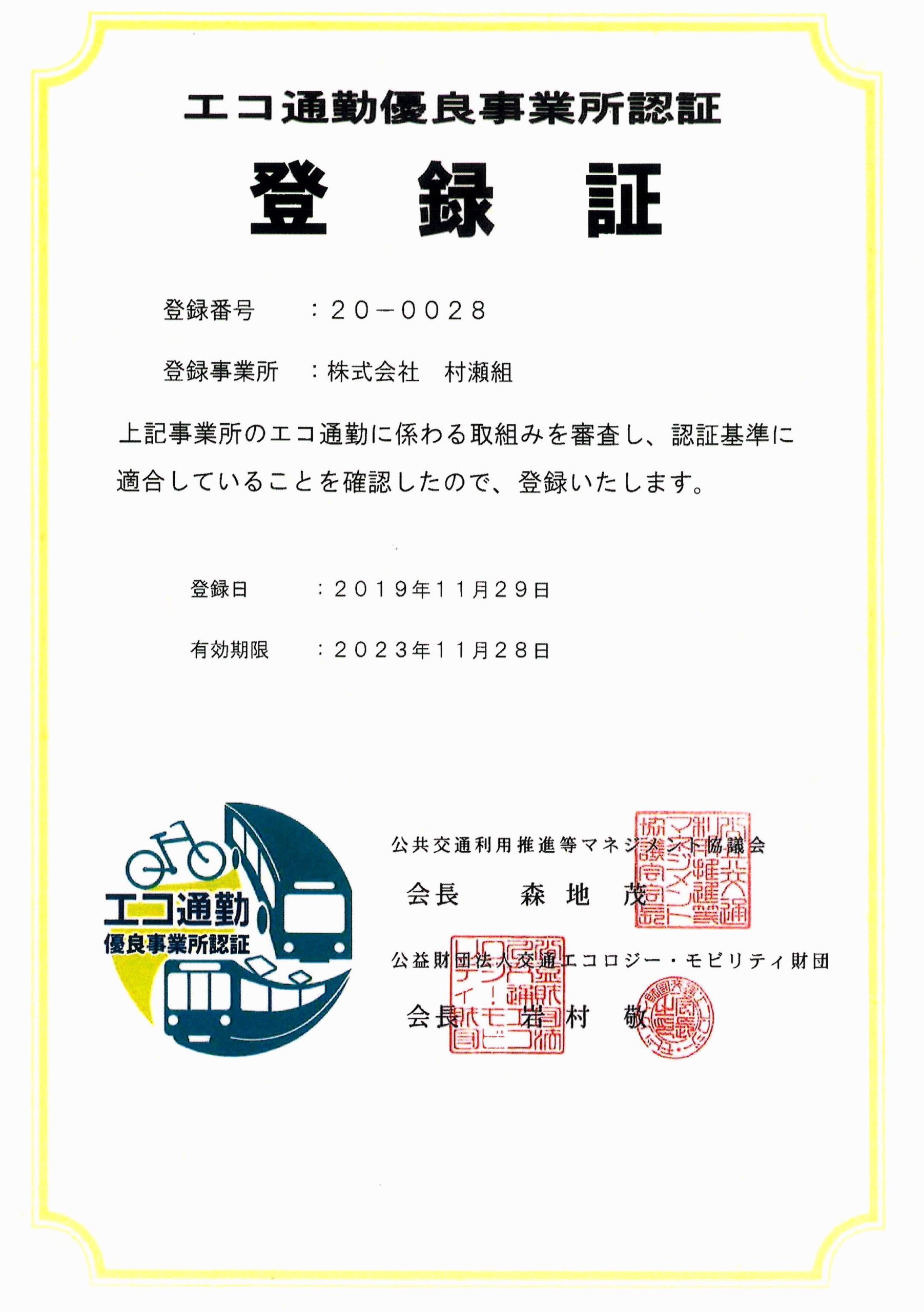 エコ通勤優良事業所認証を更新しました🚴