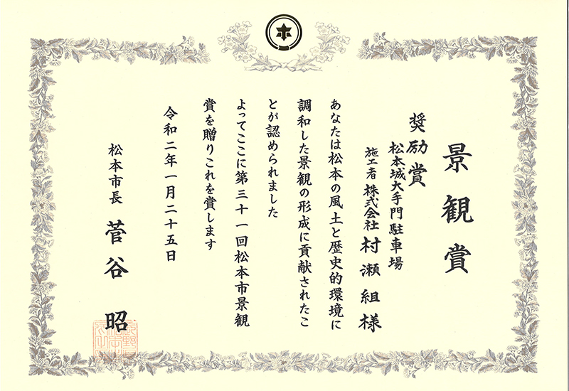 松本市景観賞を受賞しました!