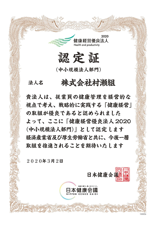 健康経営優良法人2020に認定されました