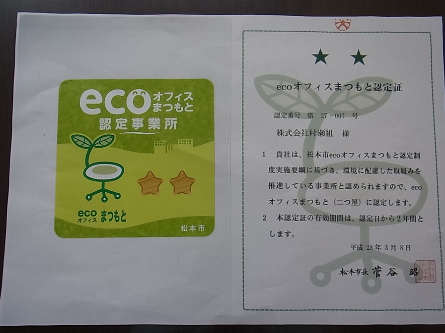 Return to ecoオフィースまつもと事業所認定されました。